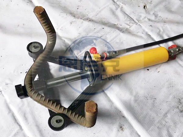 液壓彎曲機把鋼筋置于圖中虛線位置,支撐銷軸固定在機床上,中心銷軸和壓彎銷軸裝在工作圓盤上,圓盤回轉時便將鋼筋彎曲。為了彎曲各種直徑的鋼筋,在工作盤上有幾個孔,用以插壓彎銷軸,也可相應地更換不同直徑的中心銷軸,圖為32手提鋼筋彎曲機,手提鋼筋彎曲機,輕便靈活,液壓彎曲機用于剪力墻封頂、柱子封頂、鋼筋籠頭部彎鉤等施工現場。